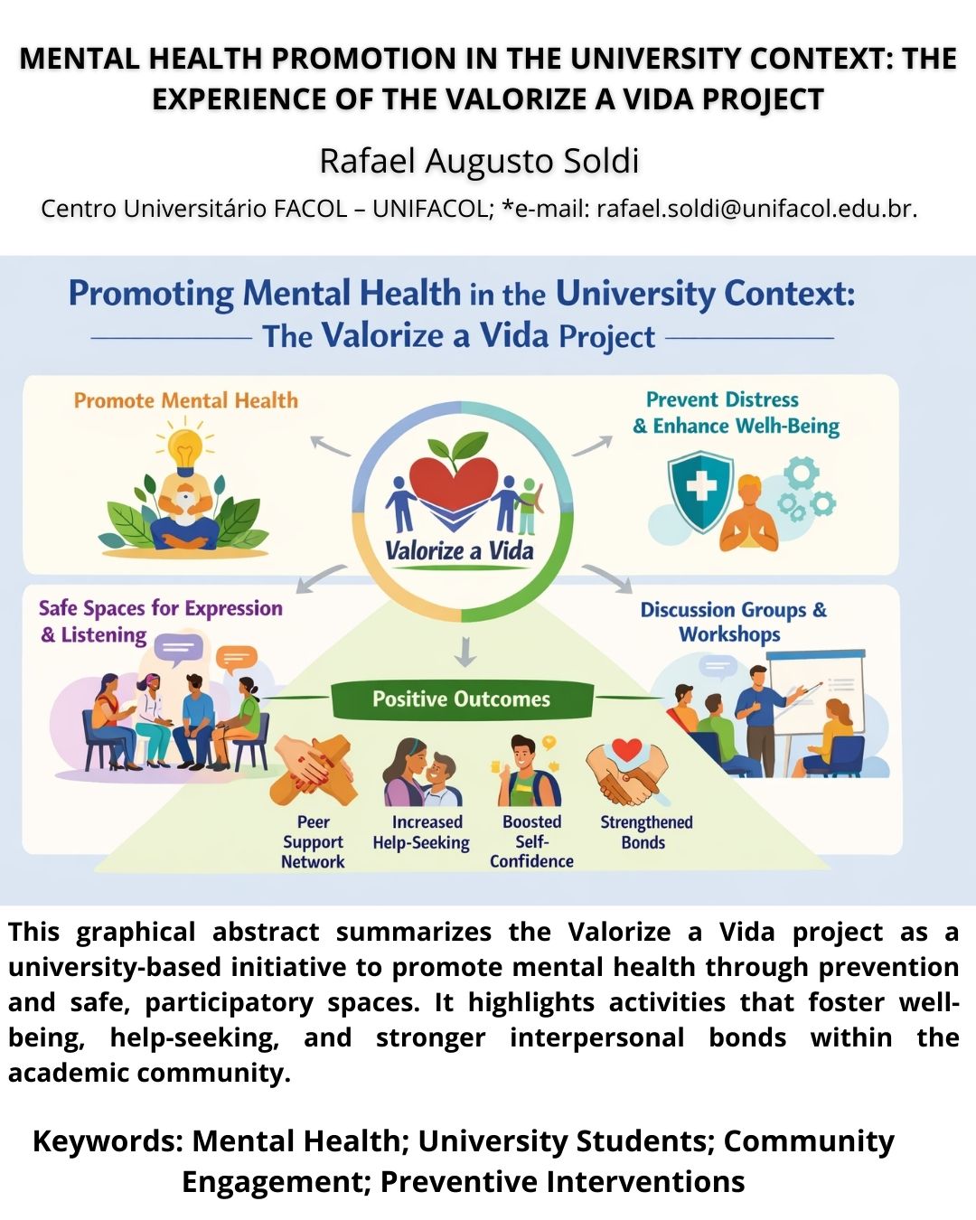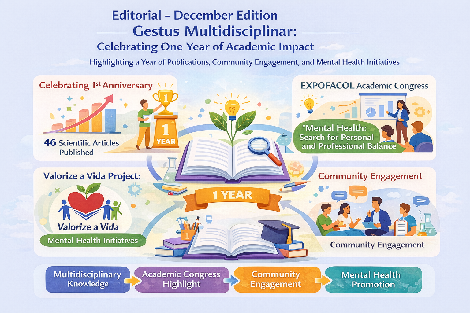 O número de dezembro da Revista Gestus Multidisciplinar celebra o primeiro ano de atividades do periódico, marcado pela publicação de 46 trabalhos científicos e pela consolidação da revista como espaço de diálogo interdisciplinar e de divulgação do conhecimento. Entre os destaques da edição, apresenta-se o projeto de extensão Valorize a Vida, voltado à promoção da saúde mental e ao fortalecimento do bem-estar de estudantes de graduação, reafirmando o papel social da universidade no cuidado com a comunidade acadêmica. Nesse número da Gestus também enfatiza a relevância do Congresso Acadêmico Multidisciplinar Internacional Expofacol, evento anual promovido pelo Centro Universitário FACOL – UNIFACOL, que integra pesquisadores e profissionais na construção e difusão do conhecimento científico, contando os trabalhos que apresentaram destaque durante o evento. De modo geral, reforça a missão da revista em articular ensino, pesquisa e extensão, valorizando iniciativas que promovem ciência, diálogo, cuidado e impacto social.
